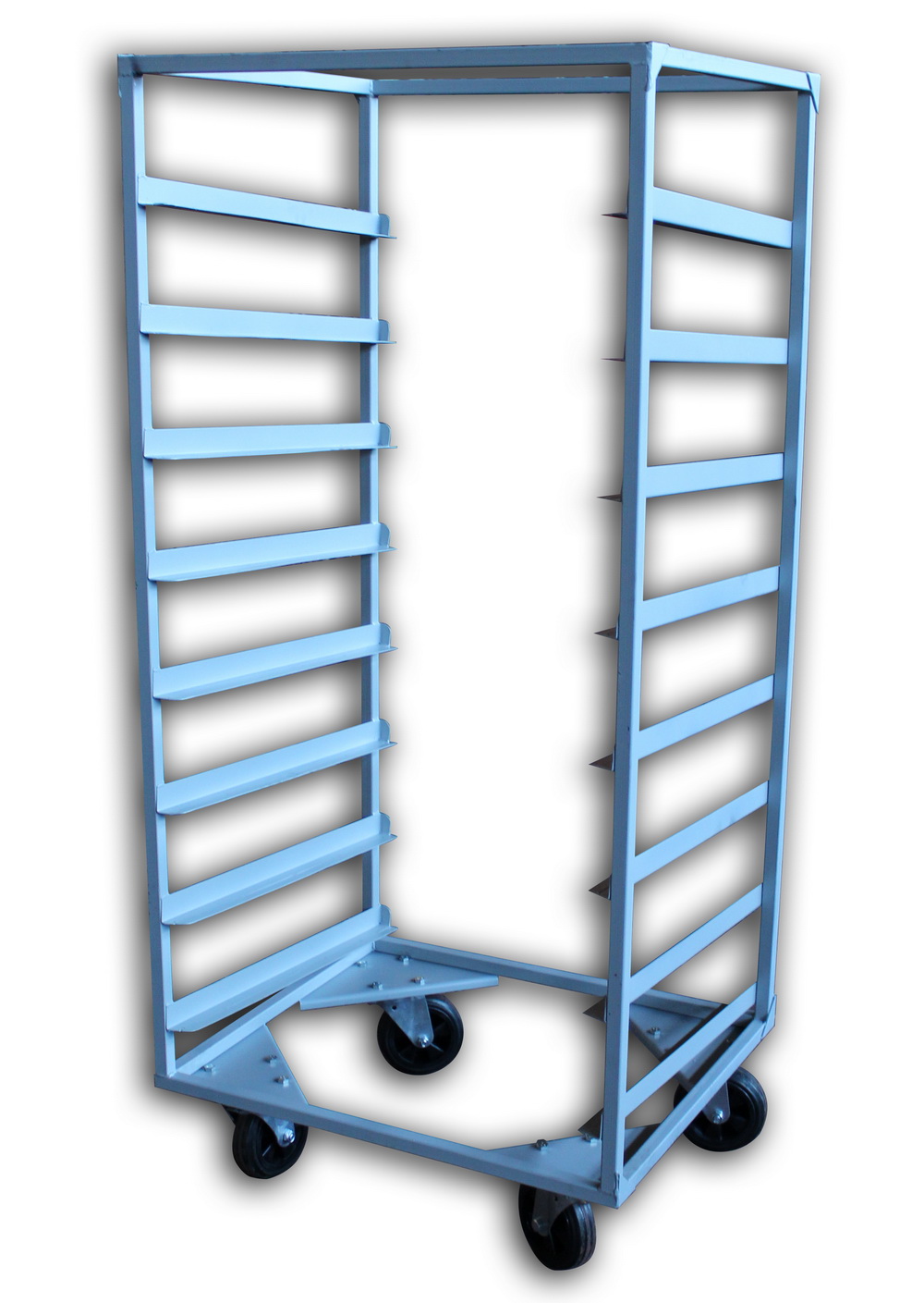 Конструктивно візки даного типу являють собою контейнери з вертикальними стійками, на яких передбачені тримачі для лотків.