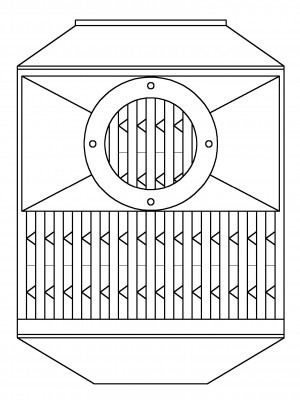 Теплоутилізатор повітря-повітря призначений для підігріву повітря за рахунок температури відхідних газів. Підігріте повітря використовується для обігріву виробничих приміщень, подачі в розстойну шафу для підсушування касет і його підігріву, для сушильних камер.